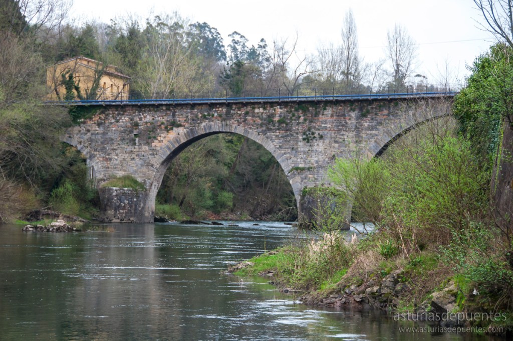 Une los concejos de Grado y Candamo, dando la entrada a este último del Camino de Santiago, sortea el paso del río Nalón. Fue reconstruido en más de una docena de ocasiones, las más significativas a finales de los siglos XVI y XVII.