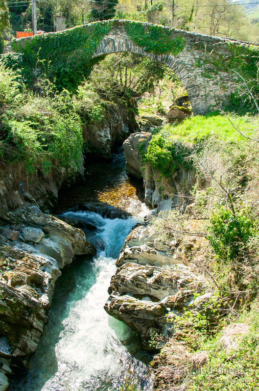 Es interesante bajar a la orilla del río del Coto para poder ver cómo discurre encajonado entre grandes rocas y disfrutar de los rápidos y de unas vistas del puente verdaderamente atractivas.