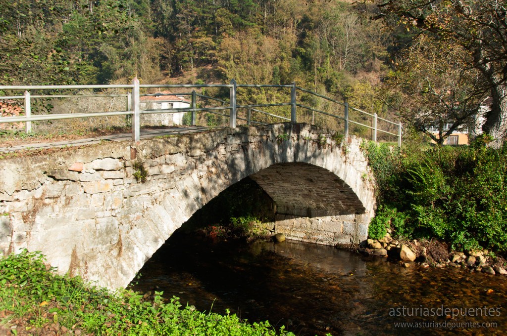 Un pequeño puente (43.408, -6.1982) de un solo arco, muy despejado y en muy buen estado de conservación. Su construcción se remonta posiblemente al siglo XV. Salva el paso sobre el río Nonaya hacia pueblos como Villarraba, Llamas o Monteagudo.