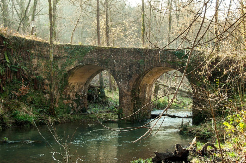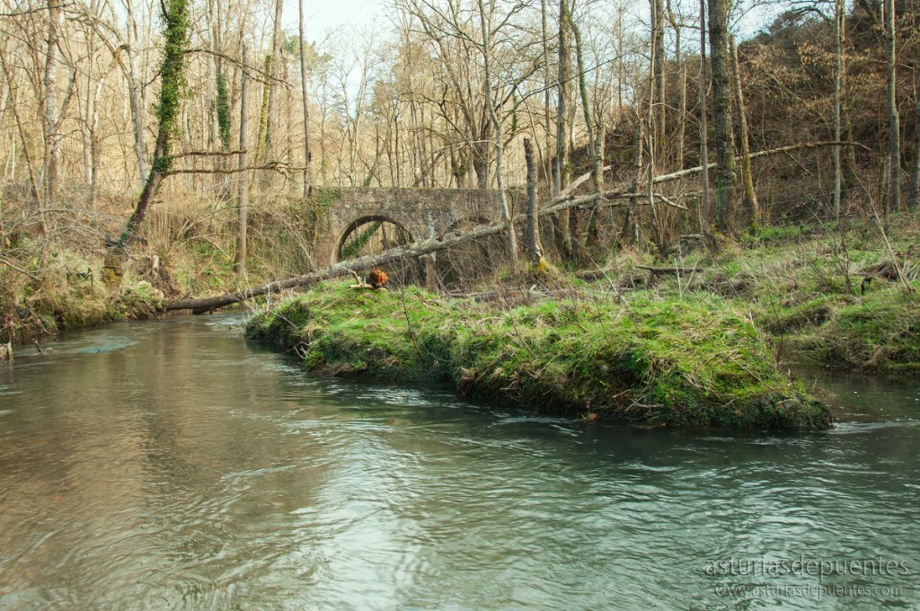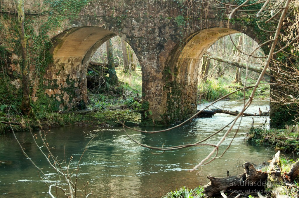 Después de caminar unos 700 m, llegamos a un puente (43.345, -5.49037) de dos arcos, con la piedra en buen estado de conservación, aunque no disponemos de datos sobre su época de construcción.