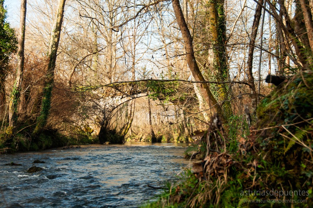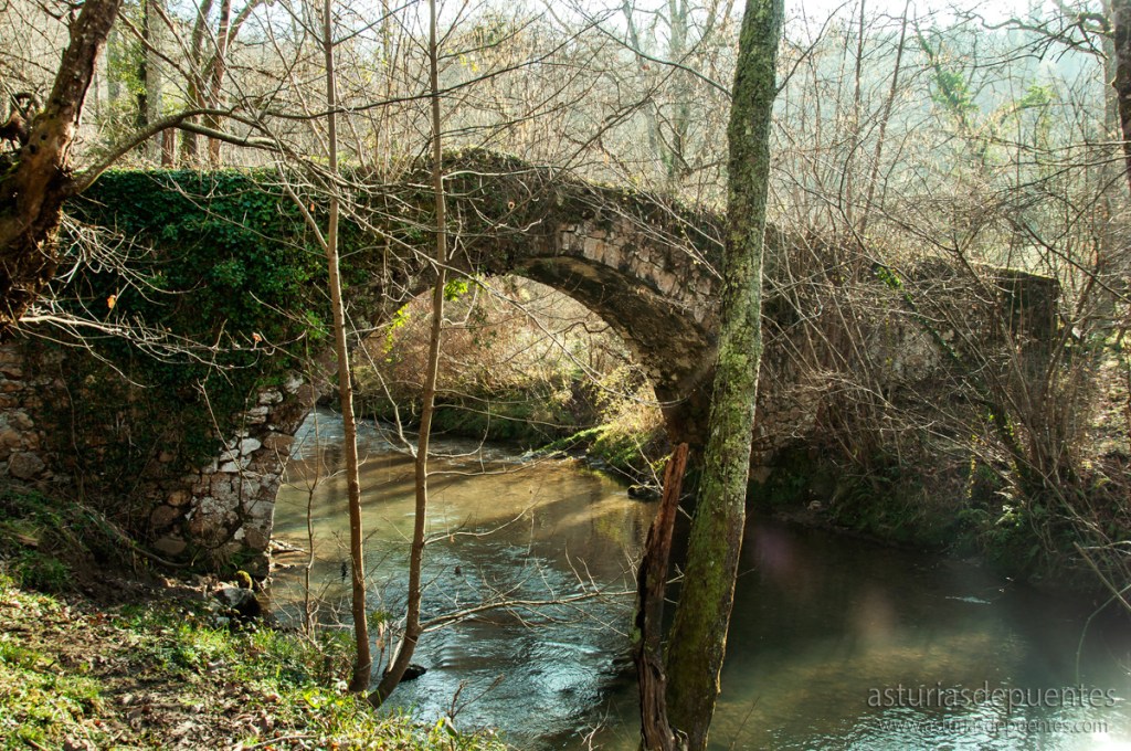Nos encontramos con el Palacio de La Ferrería del siglo XIV, con finca ,hórreo, caballerizas y el puente (43.34253, -5.4924) objeto de nuestra visita, de un solo arco, probablemente de la misma época o incluso anterior a la del palacio. Algunas fuentes lo sitúan entre los siglos XIII y XIV.