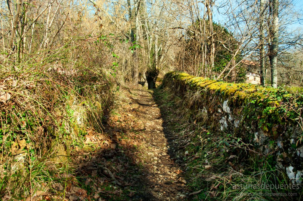 En Fuensanta, Concejo de Nava, junto a la embotelladora de agua mineral, comienza una ruta por el camino de la izquierda más próximo al curso del río, siguiendo aguas arriba hasta pasar un puente de dos arcos, a la salida del cual tenemos una bifurcación donde tomamos el camino de la izquierda. Llegamos a una portilla cerrada, pero que nos permite pasar por su lado derecho.