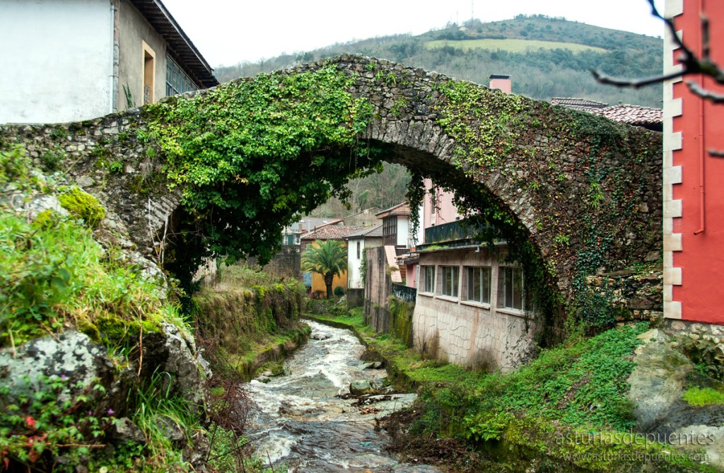 Se trata de un puente medieval de un solo arco y en muy buen estado de conservación, probablemente del siglo XIV, situado en el corazón del pueblo y sirviendo de paso sobre el arroyo de la Ría, que, procedente de la Sierra del Cuera, desemboca en el río Casaño.