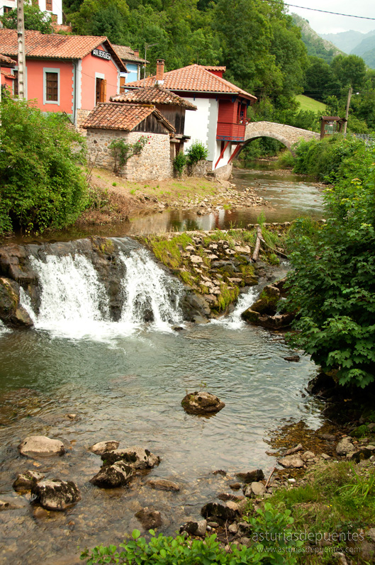 En la localidad de La Riera, Cangas de Onís, formando conjunto con una casa, está el puente medieval (43.32465, -5.07837) de esta pequeña y atractiva localidad, camino de Covadonga.
