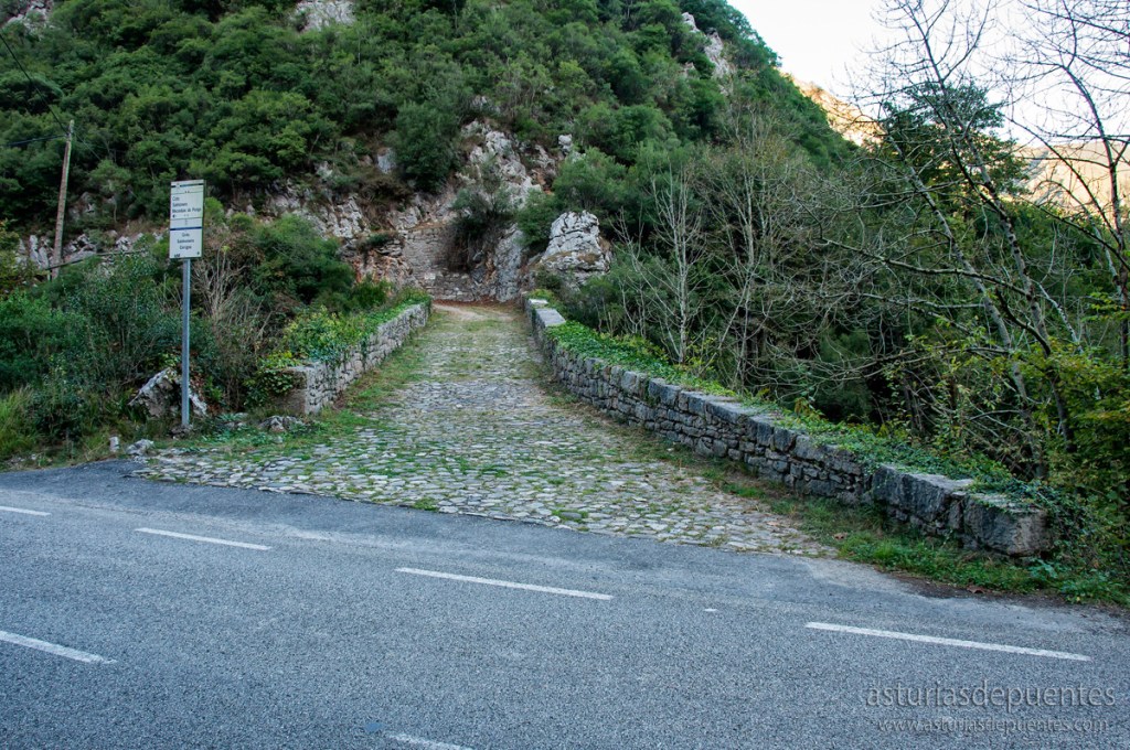 Consta de un solo arco con una estructura de gran robustez. Tiene muros de piedra laterales y calzada también empedrada. Está muy bien conservado y sirve de paso como parte de rutas a pie, disfrutando del otro margen del río. Forma parte de la calzada conocida como El Camín de la Reina.