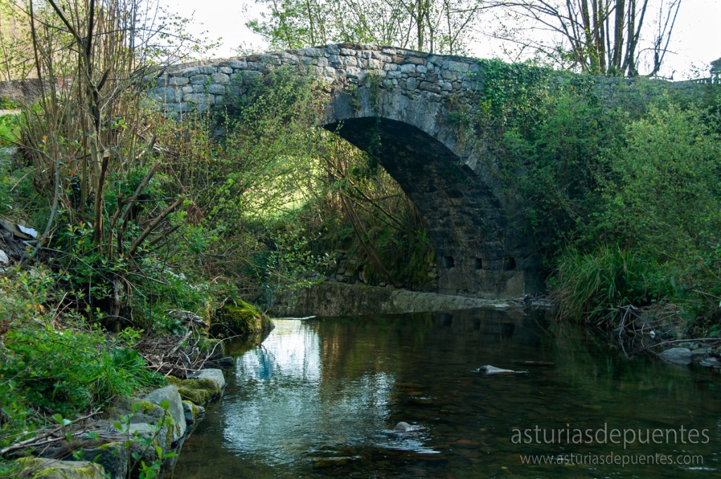 Para llegar a él, es necesario desviarse por una pista a la izquierda que hay antes de llegar al indicador que da nombre a la localidad. Después de caminar poco más de 50 metros, llegamos al puente (43.2099, -5.57746) de un solo arco de perfil alomado, en buen estado de conservación, sorteando el paso sobre el río Villoria.
