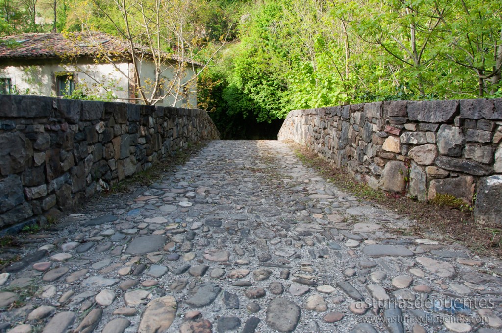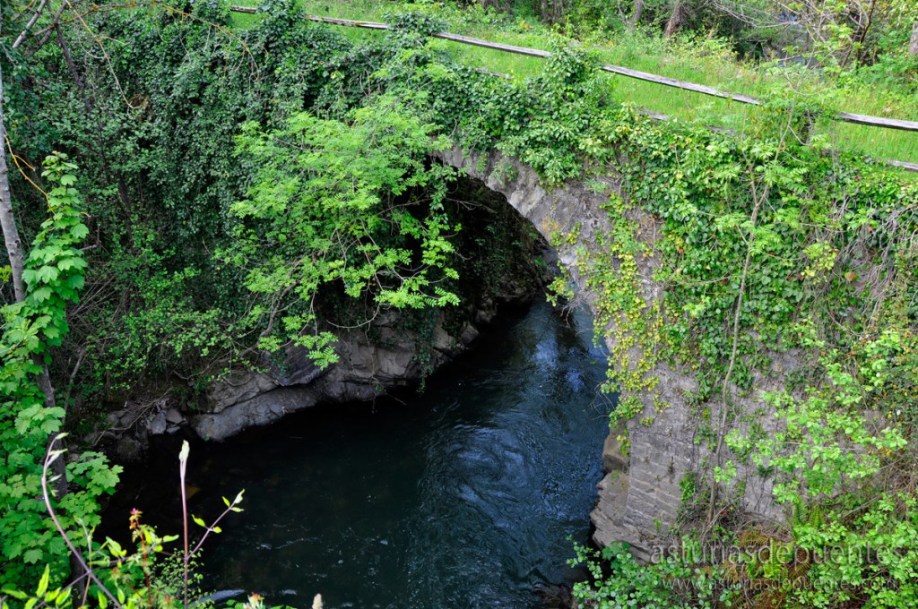 Allí dejaremos nuestro vehículo para volver sobre nuestros pasos caminando por el arcén, protegido por el petril de la carretera, hasta que lleguemos a donde podamos dirigirnos hacia un puente de piedra, el Puente Medieval de Buelles (43.07784, -5.77041 ).