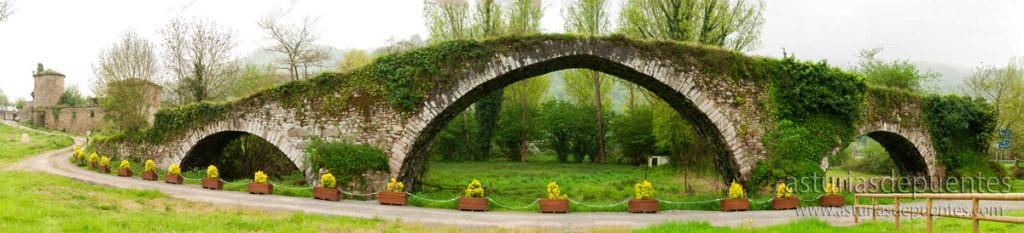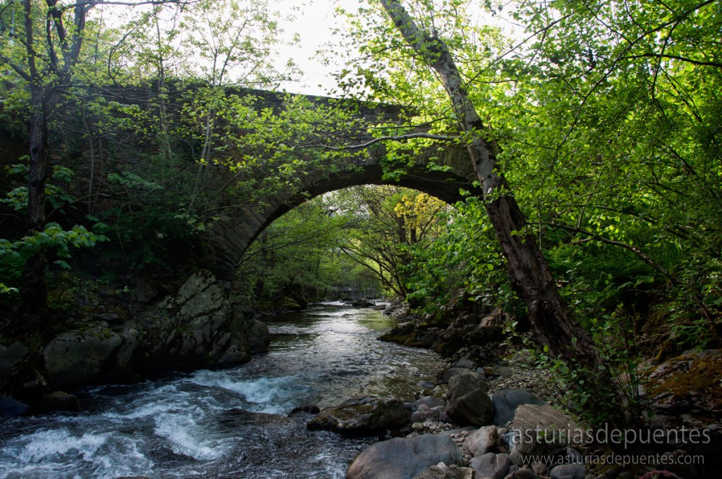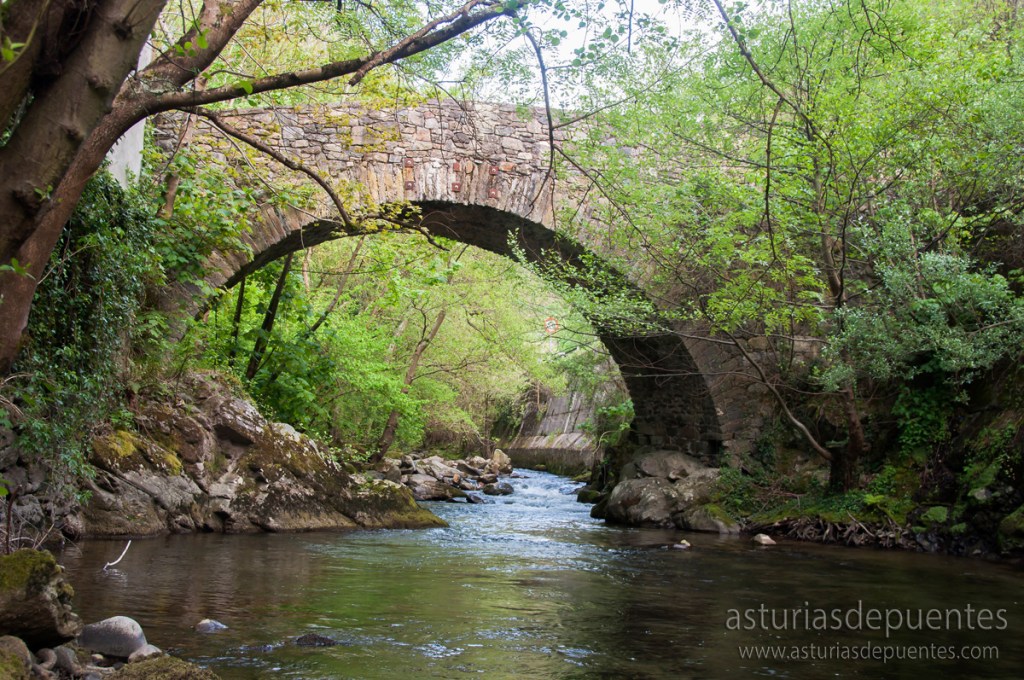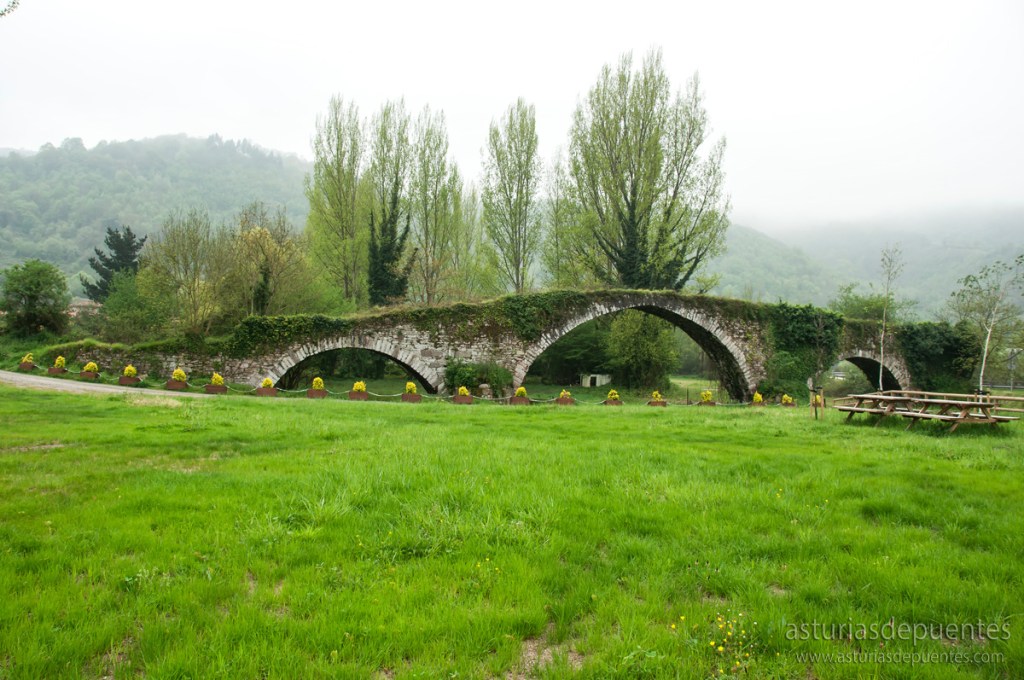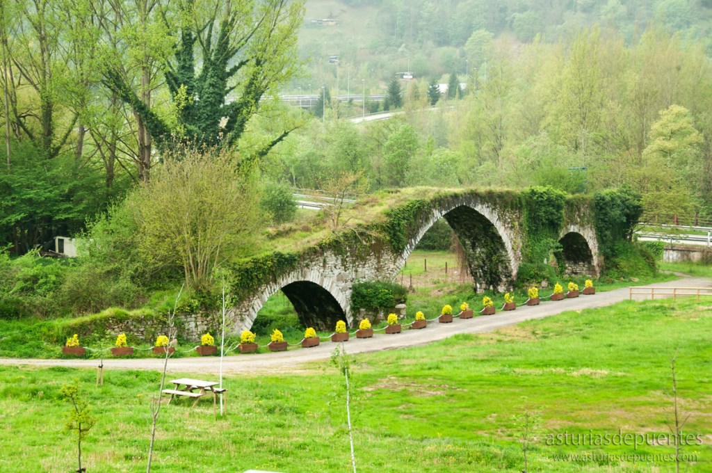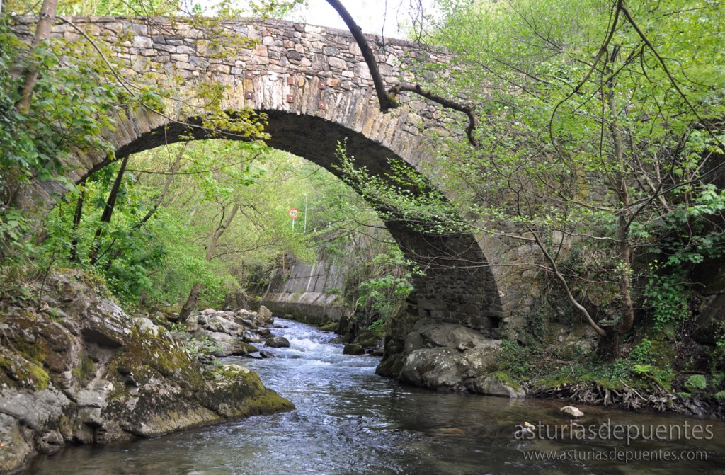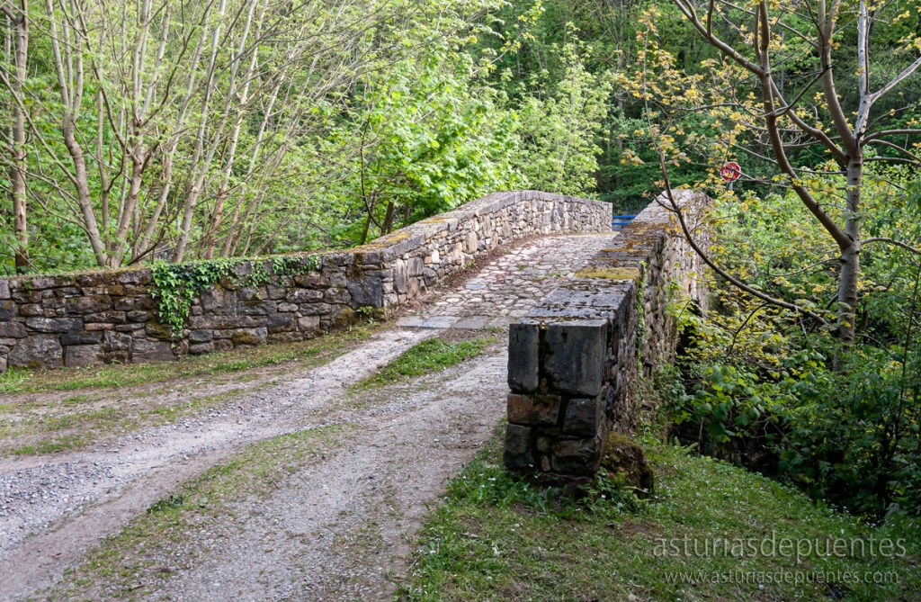 Sobre el puente se hace referencia ya en el año 1145, en tiempos de Alfonso VII. Forma parte de un conjunto histórico de la localidad ovetense, junto con la Capilla Románica de San Pelayo, la Capilla Nueva, del siglo XVII, levantada al lado de la Torre Muñiz Palacio de Bernaldo de Quirós y edificaciones como el hospital de peregrinos, de finales del siglo XVIII que, junto con los de Pola de Lena, Castiello, Villayana, Mieres y otros, ayudó a formar una cadena de hospitales entre Pajares y Oviedo.