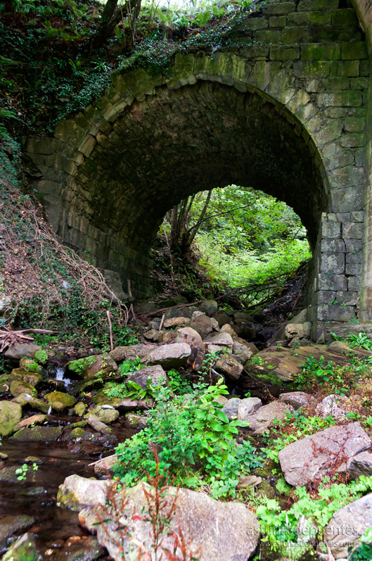 Una vez que llegamos al lecho del río, nos encontramos con un puente de imponente altura y de un solo arco, el Puente de La Muela (43.05815, -5.76915).