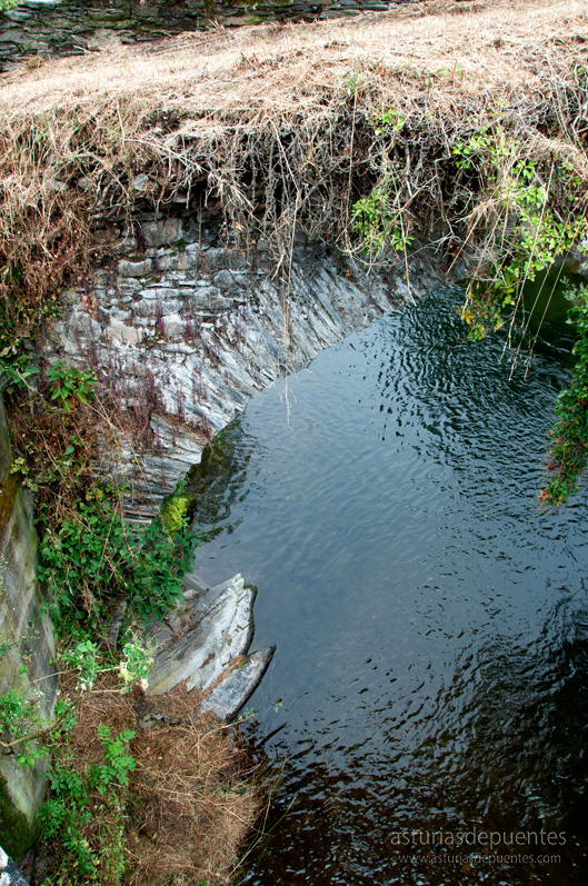 El puente sobre el que acabamos de pasar es el objeto de nuestra parada. Se trata del Puente de Veigapope (43.13577, -6.5788), de un solo arco y en estado de conservación aceptable.