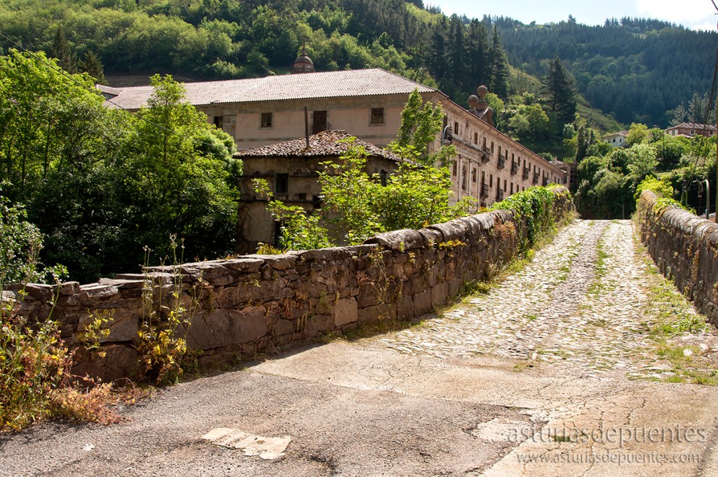 Forma parte de un conjunto histórico con el Monasterio de San Juan Bautista o de Corias, que hoy forma parte de la red de Paradores Nacionales. Es probable que se trate de un puente medieval de base romana, reconstruido en el año 1571, según una inscripción que hay en una de las piedras del antepecho.