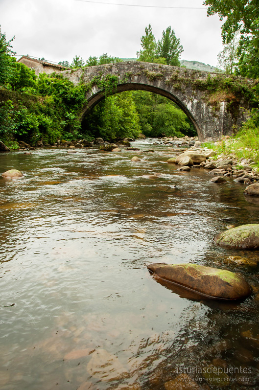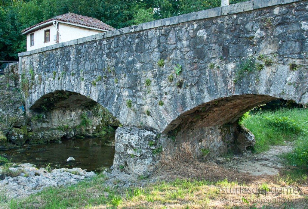 Estamos ante uno de los puentes más antiguos de Asturias, que forma parte de la antigua calzada que unía Llanes, Cabrales, Onís y Cangas de Onís. Su estado de conservación es preocupante, con su estructura bastante deteriorada y muy cubierta por la maleza.