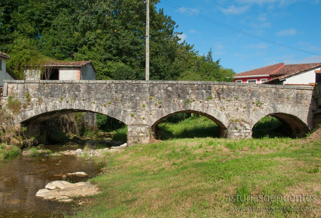 De pequeñas dimensiones y de un solo arco, se encuentra entre viviendas y hórreos típicos de la región y sirve para pasar a pie sobre el arroyo antes mencionado.