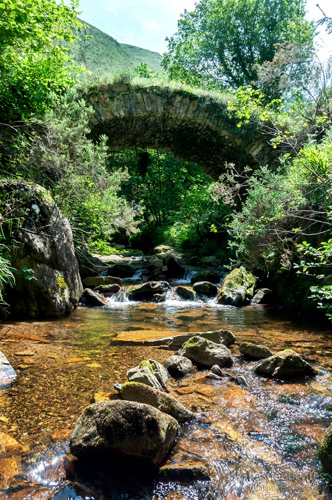 Caminaremos bordeando la iglesia, pegados al río hasta llegar a otro puente, el Puente de Mestas de Con II (43.34235, -5.01617).